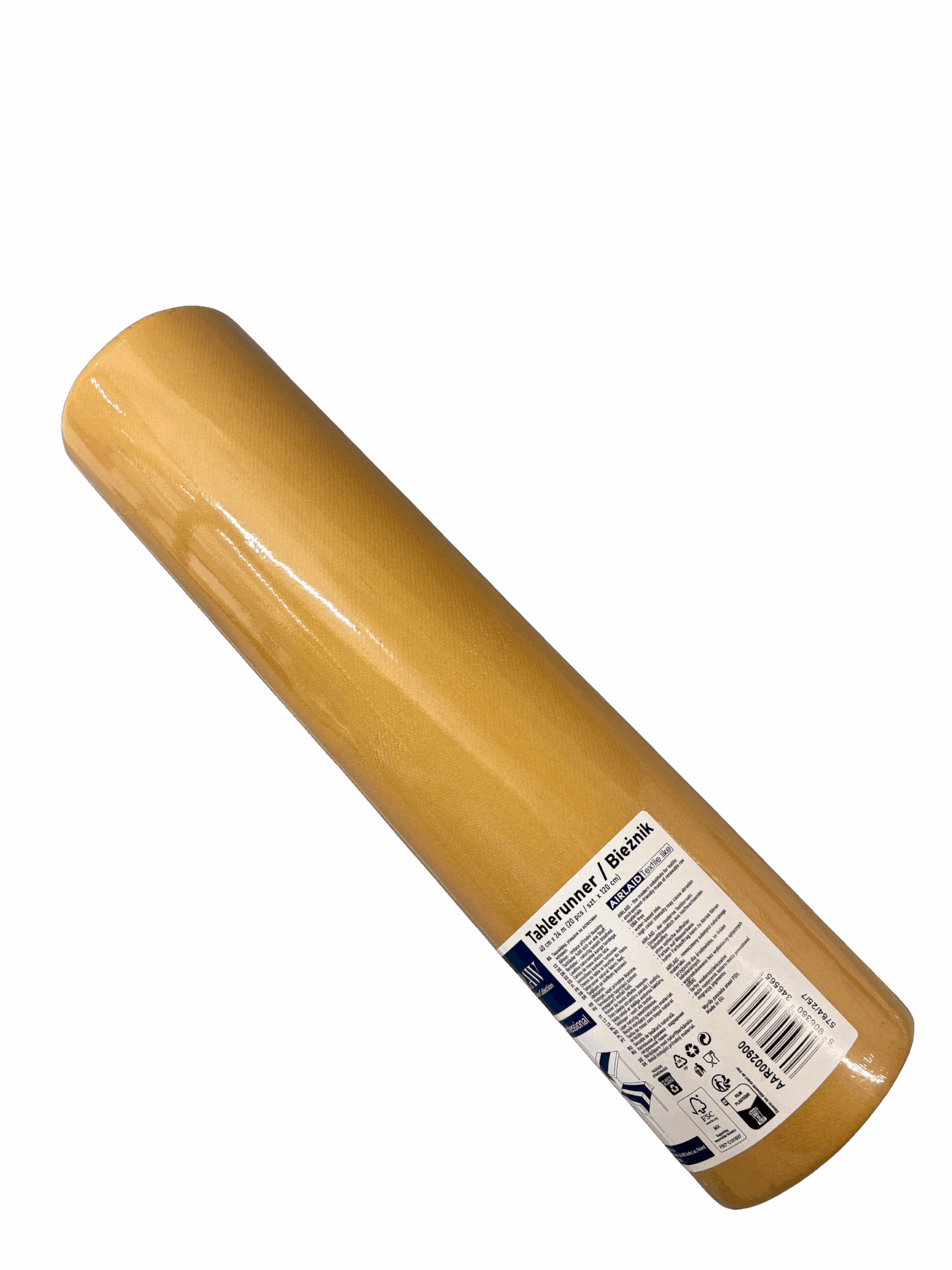 Bieżnik AIRLAID 40 cm × 24 m w kolorze złotym to elegancka dekoracja stołu wykonana z materiału przypominającego tkaninę. Jest miękki, trwały i estetyczny, dzięki czemu doskonale nadaje się na wesela, bankiety, przyjęcia okolicznościowe oraz do użytku w gastronomii.