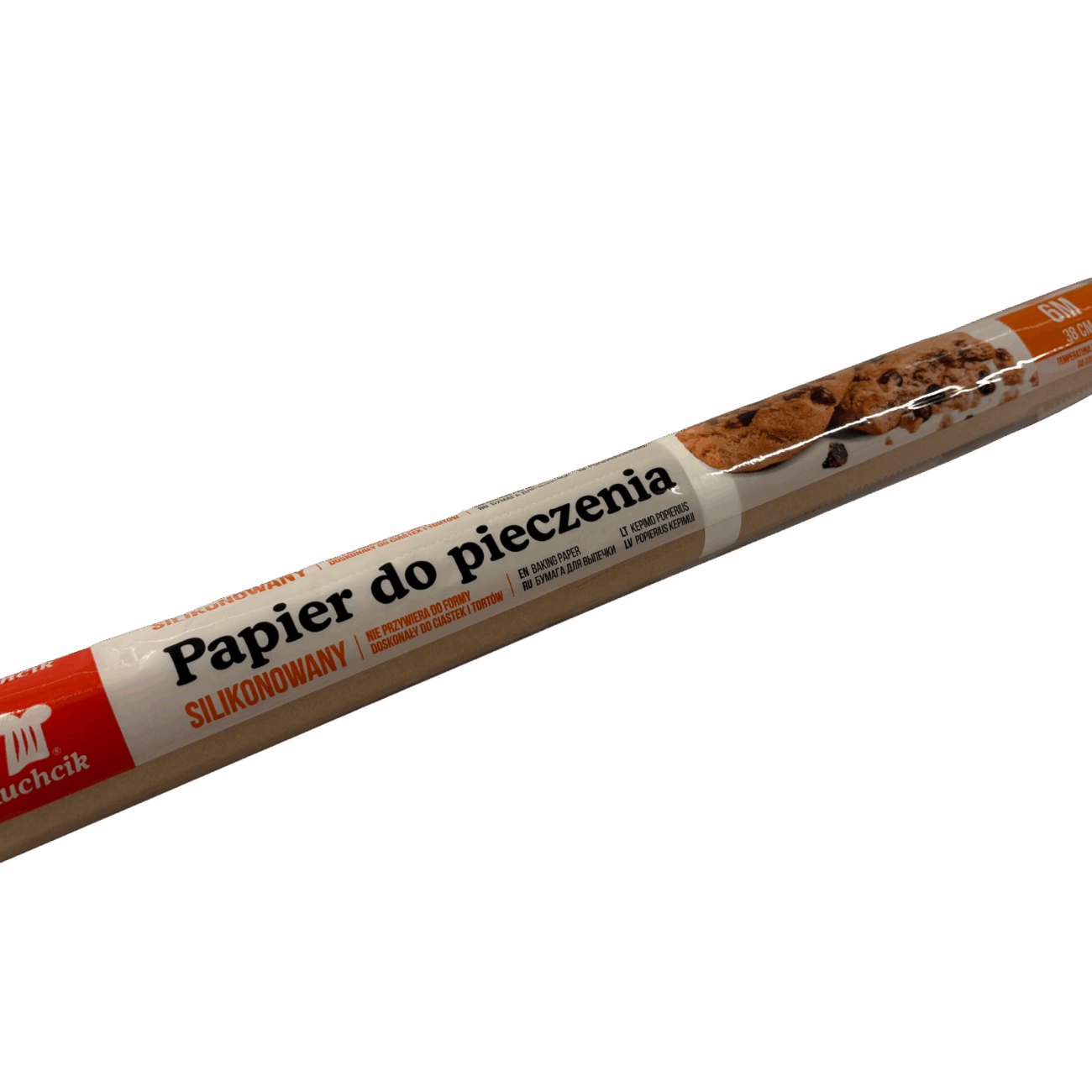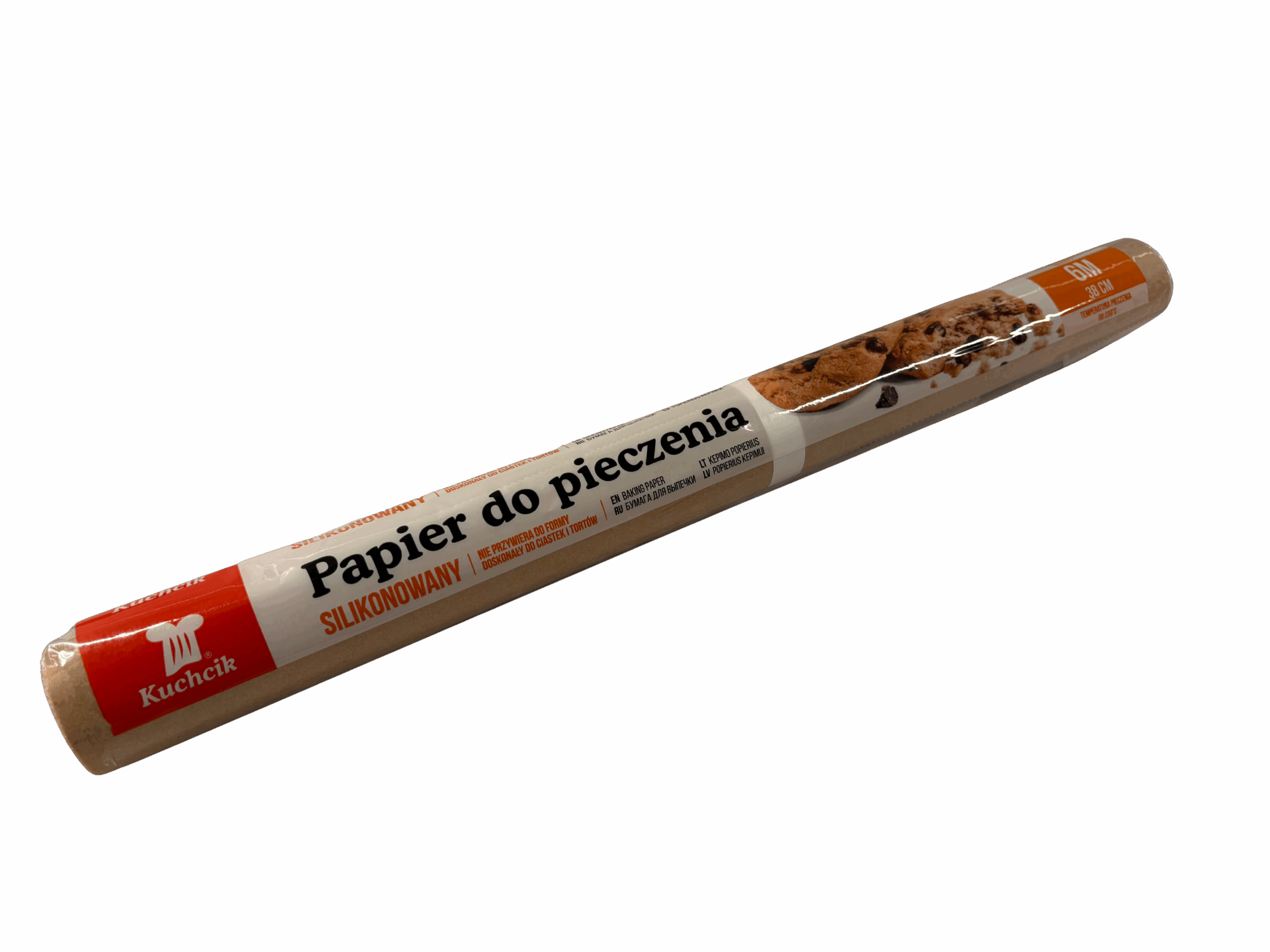 Papier do pieczenia Kuchcik silikonowany 6 m × 38 cm to praktyczny dodatek do kuchni, dzięki któremu pieczenie staje się prostsze i bardziej czyste. Pokryty specjalną warstwą silikonu, zapobiega przywieraniu potraw – ciasto, pizza czy bataty łatwo odchodzą od papieru po upieczeniu. Idealny do pieczenia bez tłuszczu oraz do dużych blach, rusztów i form. Hygieniczny i bezpieczny w kontakcie z żywnością, utrzymuje naturalny aromat wypieków i ułatwia sprzątanie.