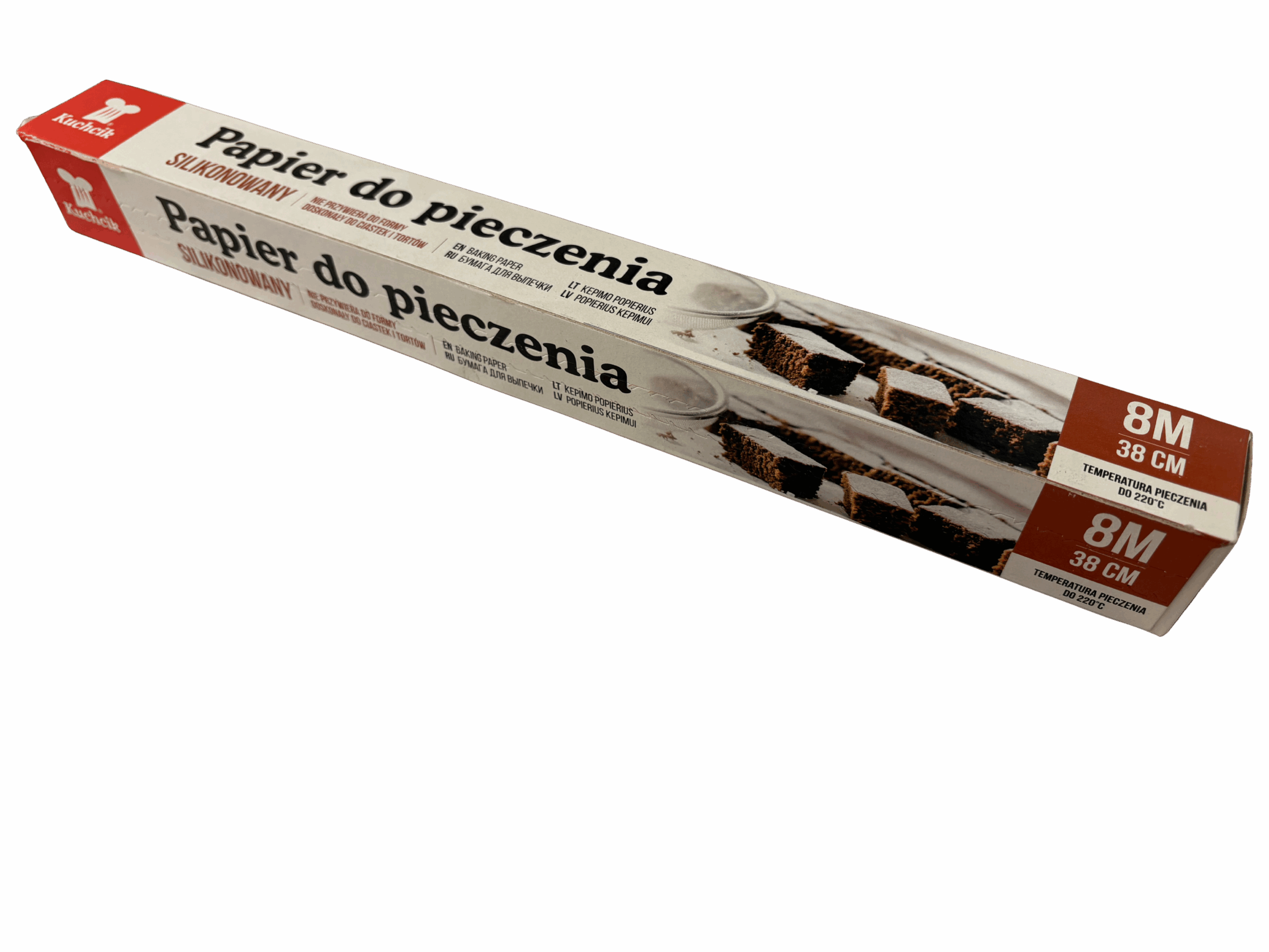 Papier do pieczenia Kuchcik silikonowany 8 m × 38 cm to wysokiej jakości rolka, która ułatwia pieczenie i sprzątanie. Dzięki podwójnej powłoce silikonu potrawy nie przywierają do papieru — ciasta, pizza, frytki czy warzywa z łatwością odchodzą po pieczeniu. Materiał jest bezwonny i nie zmienia aromatu potraw, co pozwala zachować naturalny smak. Można piec bez tłuszczu — papier wspiera zdrowe pieczenie i ogranicza zabrudzenia blachy.