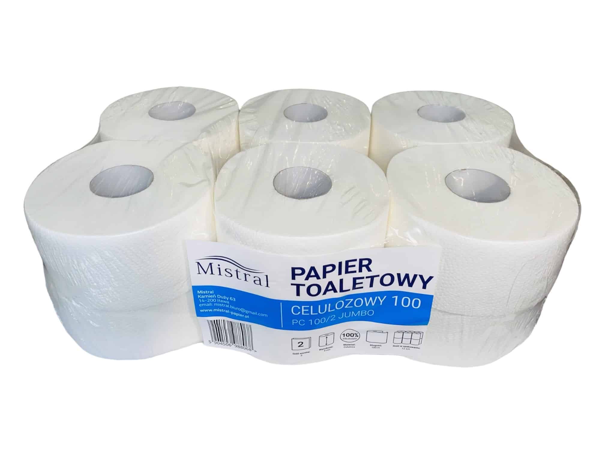 Papier toaletowy Mistral Jumbo 100 m to wydajny i ekonomiczny produkt przeznaczony do użytku w toaletach publicznych, biurowych oraz zakładach pracy. Wykonany z wysokiej jakości, miękkiej celulozy, zapewnia komfort, higienę i trwałość, a większa rolka pozwala na rzadszą wymianę.