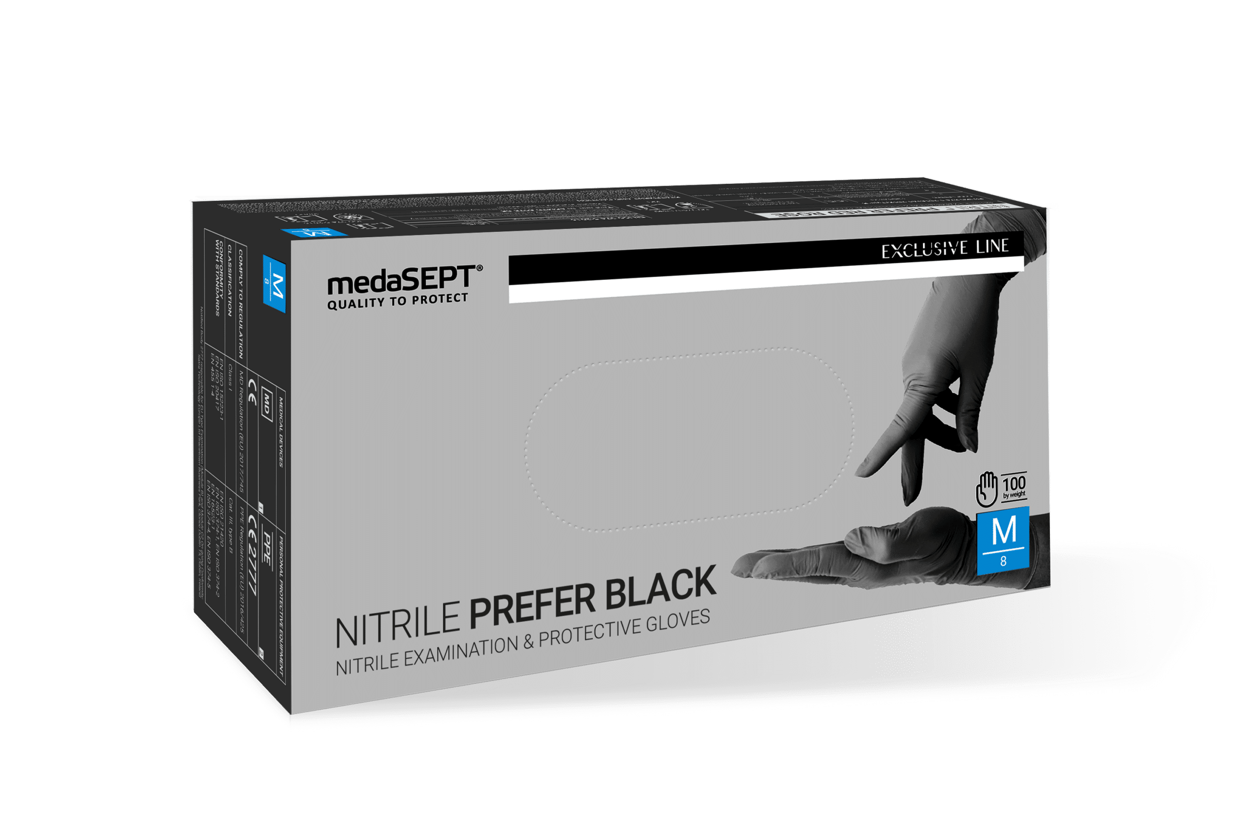 Rękawiczki MedaSEPT Nitryle Black M (100 szt.) to jednorazowe rękawice ochronne o wysokiej wytrzymałości, wykonane w 100% z nitrylu. Dzięki temu materiałowi są odporne na uszkodzenia mechaniczne i niektóre chemikalia, a jednocześnie bardzo elastyczne. Brak pudru eliminuje ryzyko podrażnień lub zabrudzeń, co sprawia, że są idealne w zastosowaniach medycznych, diagnostycznych, laboratoryjnych oraz przy pracach warsztatowych i BHP.