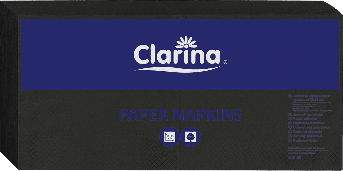 Te czarne serwetki papierowe 33 × 33 cm w dwuwarstwowej konstrukcji to świetne rozwiązanie zarówno do restauracji, cateringu, jak i eleganckich przyjęć. Ich intensywnie czarny kolor dodaje stylu i klasy każdej zastawie stołowej, a papierowa struktura zapewnia chłonność i trwałość.