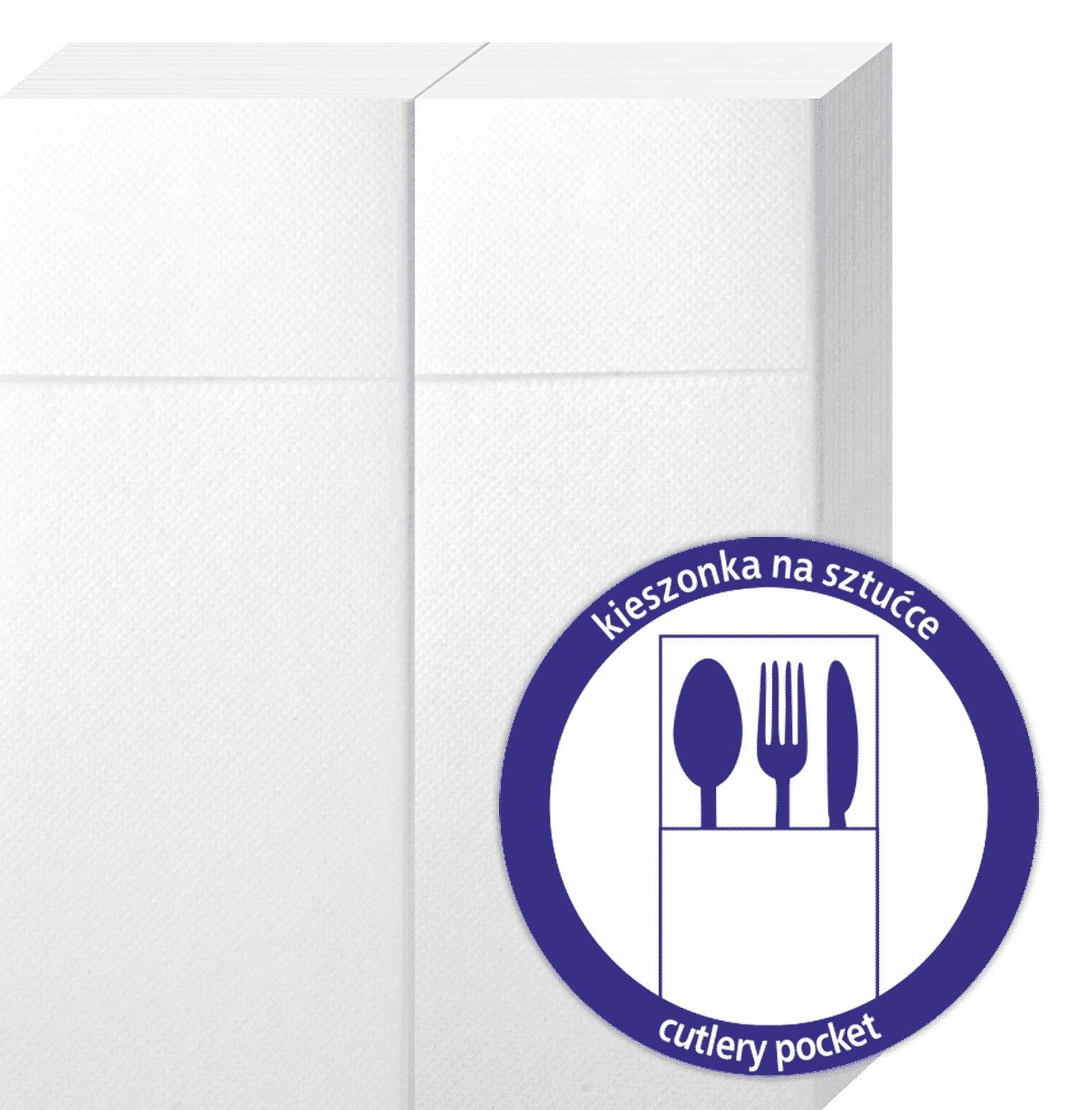 Serwetki Punta 32×38 cm w wersji 2-warstwowej to eleganckie i praktyczne etui na sztućce, które idealnie sprawdzi się w restauracjach, podczas cateringu, bankietów oraz eventów. Po umieszczeniu w nich sztućców tworzą estetyczną kieszonkę („pocket”), a po ich wyjęciu można je rozłożyć i używać jako tradycyjną serwetkę.