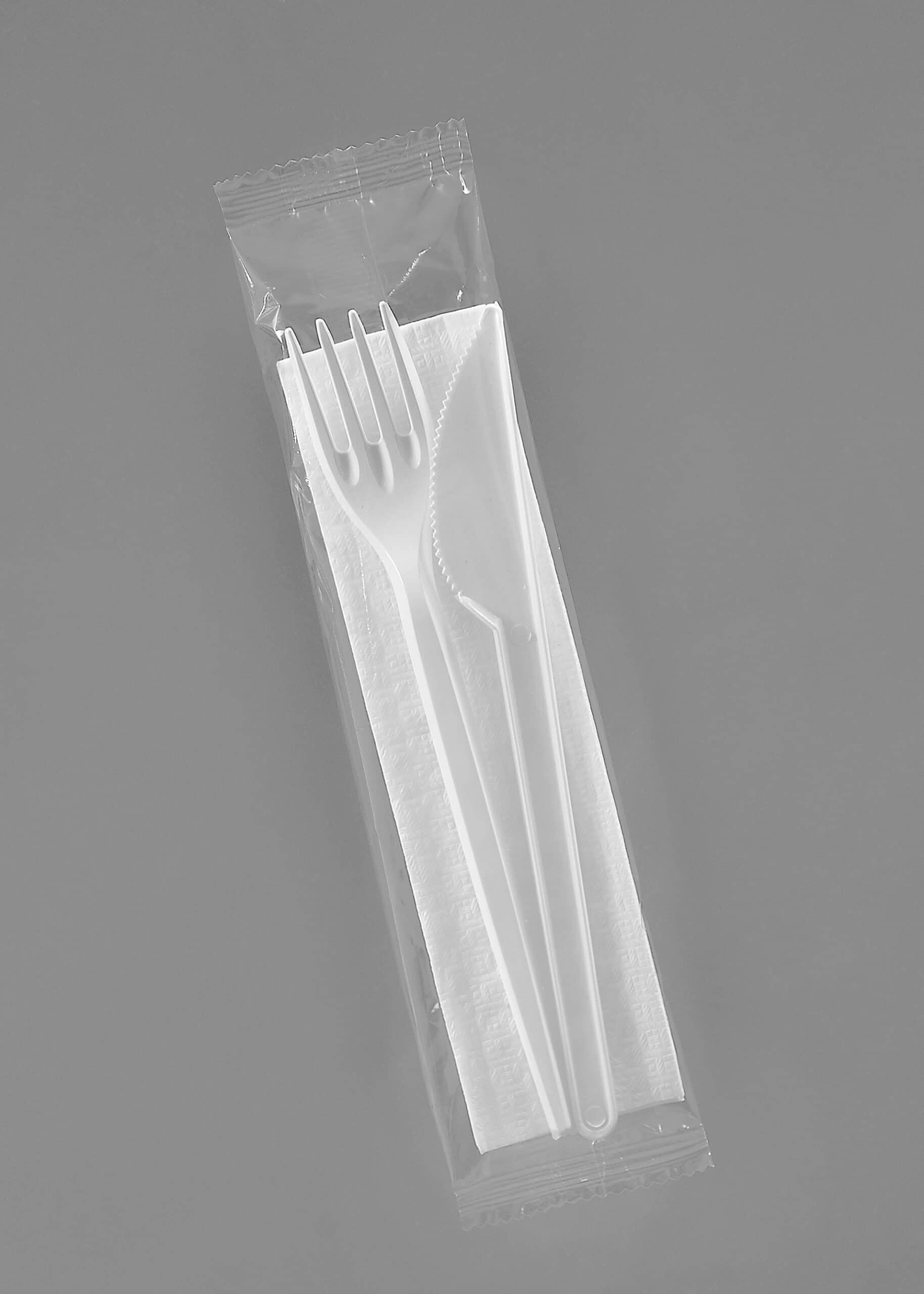 Zestaw widelec + nóż + serwetka białe, 350 sztuk, pakowane osobno, to wygodne i higieniczne rozwiązanie do gastronomii, cateringu i przyjęć. Plastikowe sztućce są wytrzymałe i wygodne w użyciu, a papierowa serwetka 2-warstwowa zapewnia estetykę i higienę.