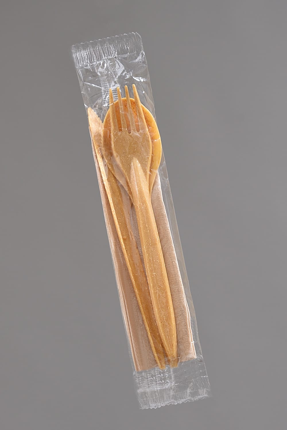 Kompletny zestaw jednorazowych sztućców WPC (Wood Plastic Composite) zawierający widelec, nóż, łyżkę oraz serwetkę, zapakowany w estetyczną i higieniczną folię. Przeznaczony do gastronomii, cateringu oraz dań na wynos. Materiał WPC to nowoczesne połączenie drewna i tworzywa sztucznego – wytrzymałe, estetyczne i bardziej ekologiczne niż klasyczny plastik.