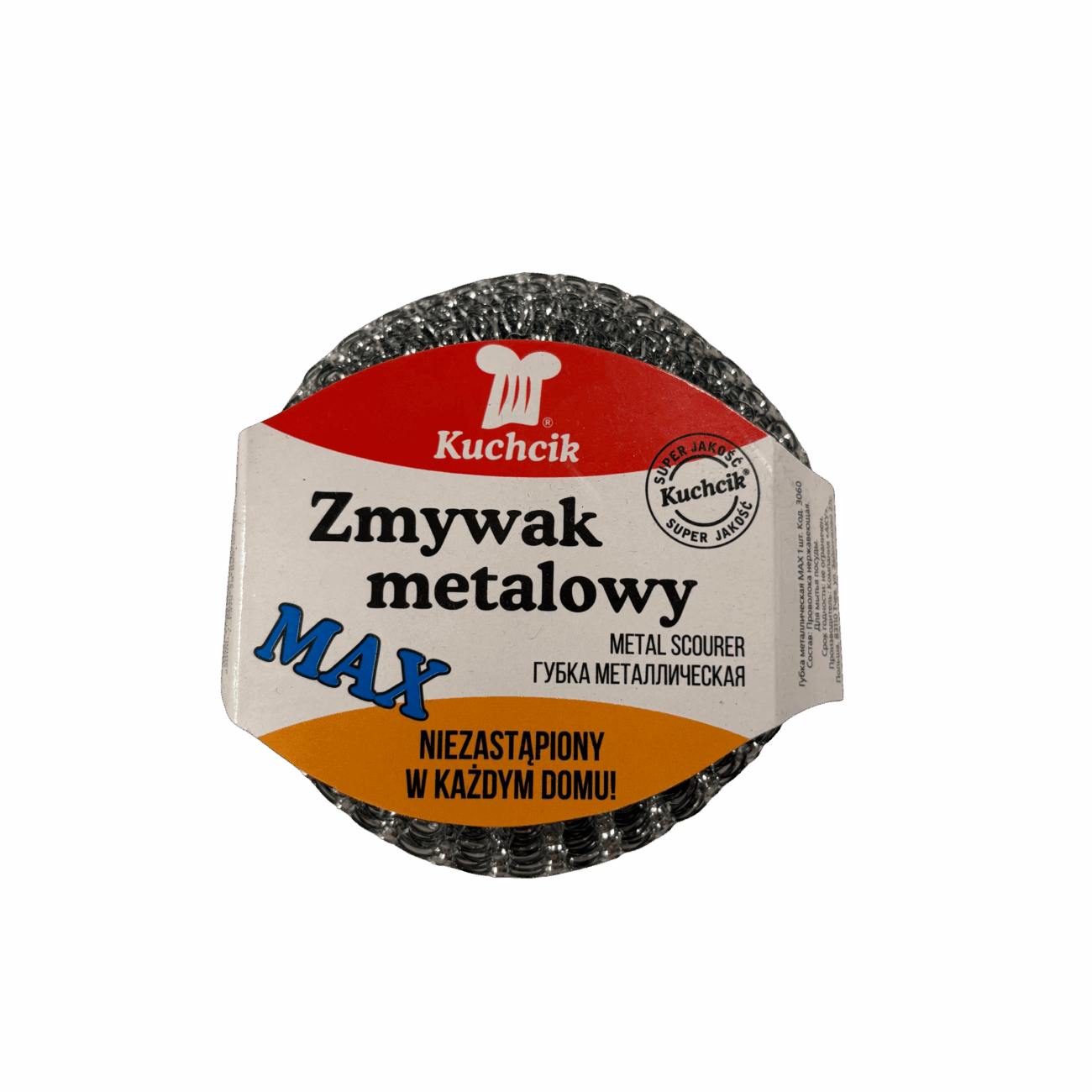 Zmywak metalowy Kuchcik MAX to niezawodny, stalowy druciak spiralny zaprojektowany do radzenia sobie z uporczywym brudem i przypalonymi resztkami. Jego metalowa konstrukcja gwarantuje trwałość i skuteczność tam, gdzie tradycyjne gąbki zawodzą. Świetnie nadaje się do kuchennych garnków, patelni, grilli oraz wszelkich stalowych i żeliwnych powierzchni. Zmywak jest wytrzymały, a jego kompaktowy rozmiar pozwala wygodnie operować w trudno dostępnych miejscach.